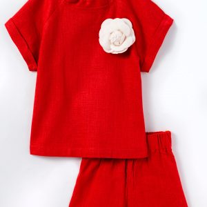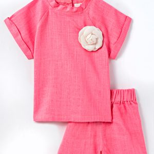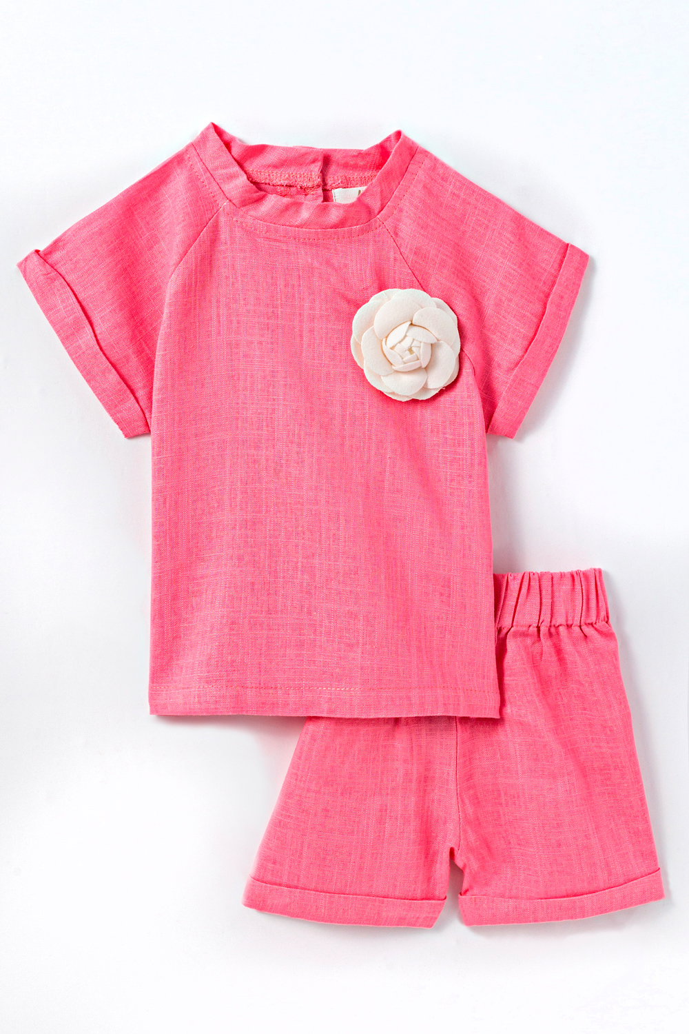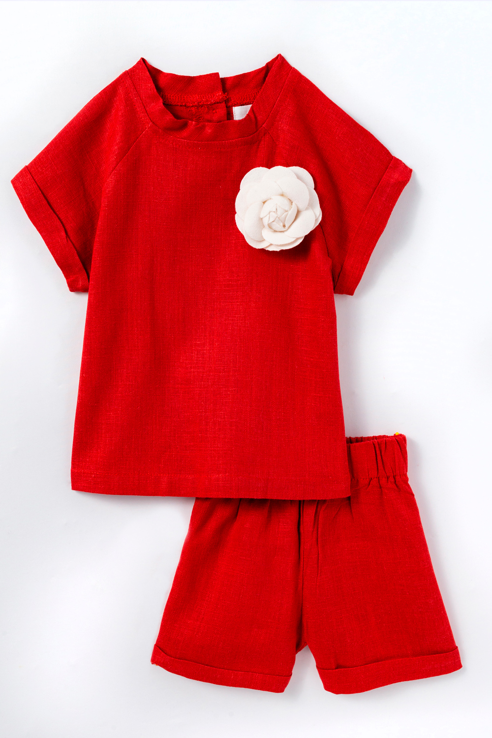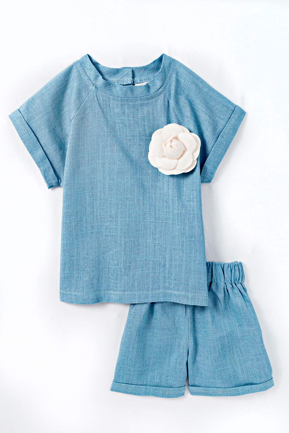Conjunto Infantil de Linho Blusa e Bermuda Flower