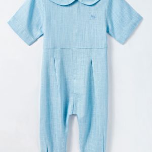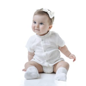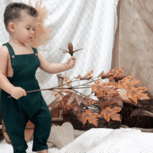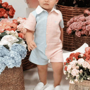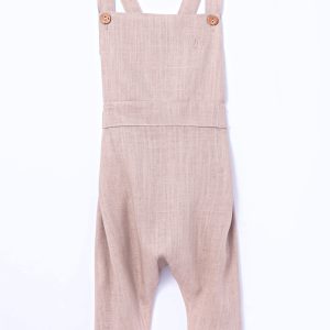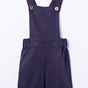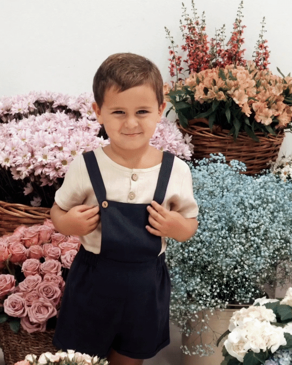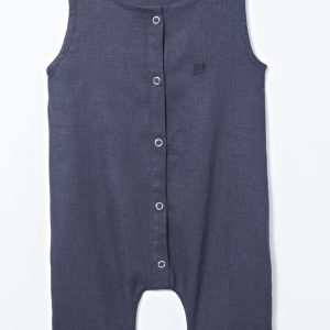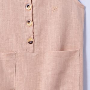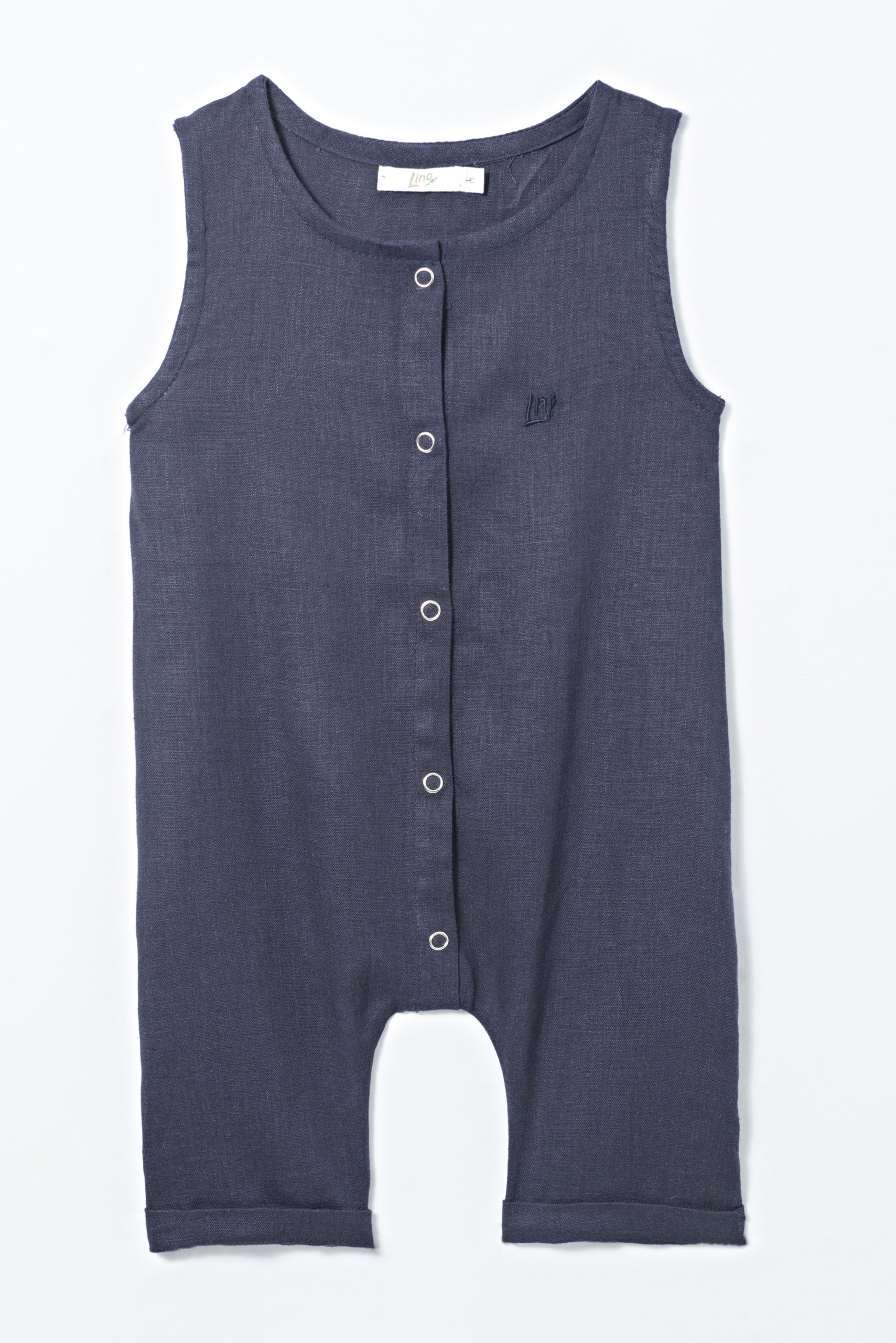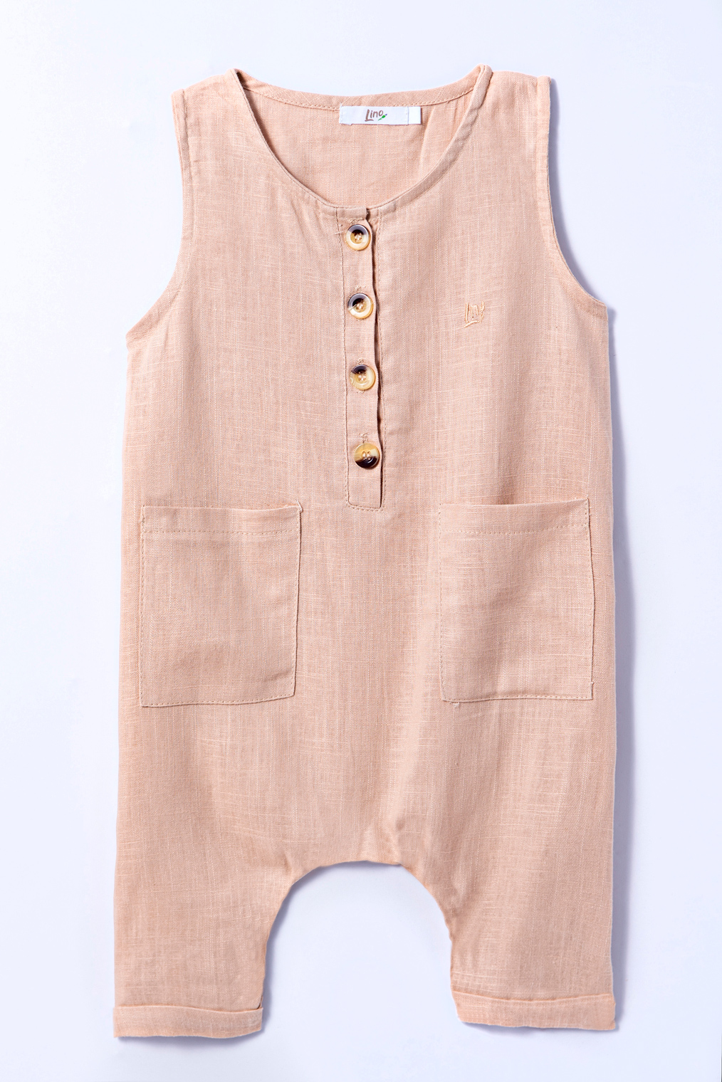 Macacão Infantil de Linho Curto Sem Mangas e Bolsos