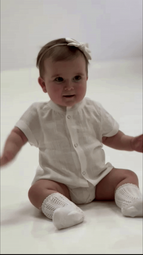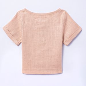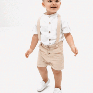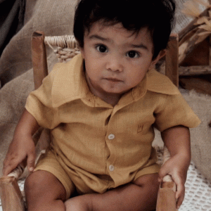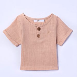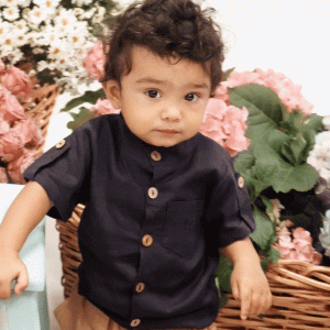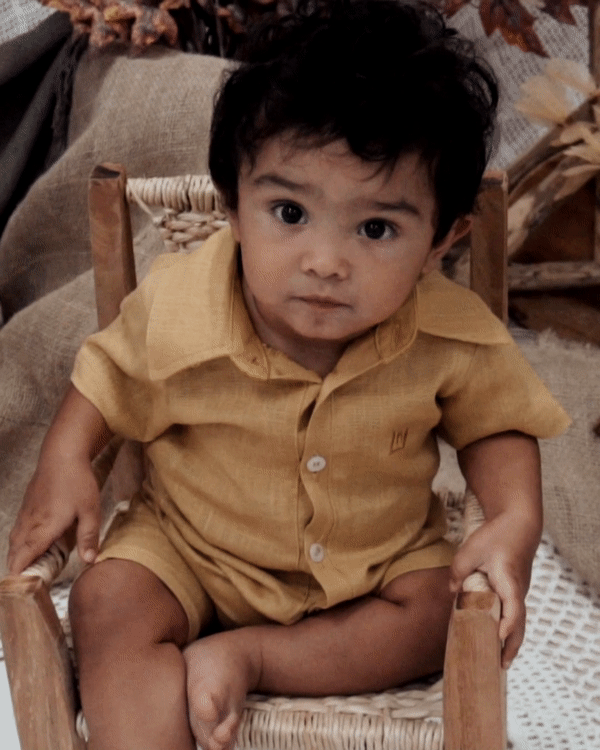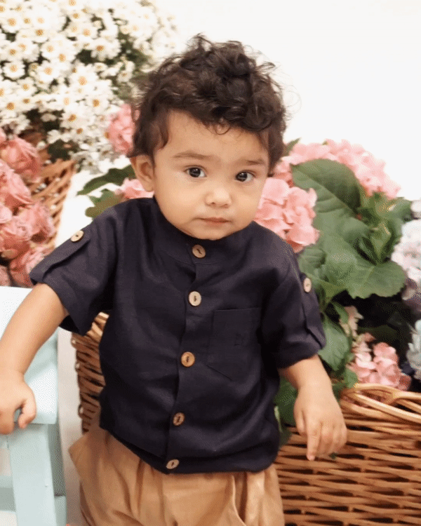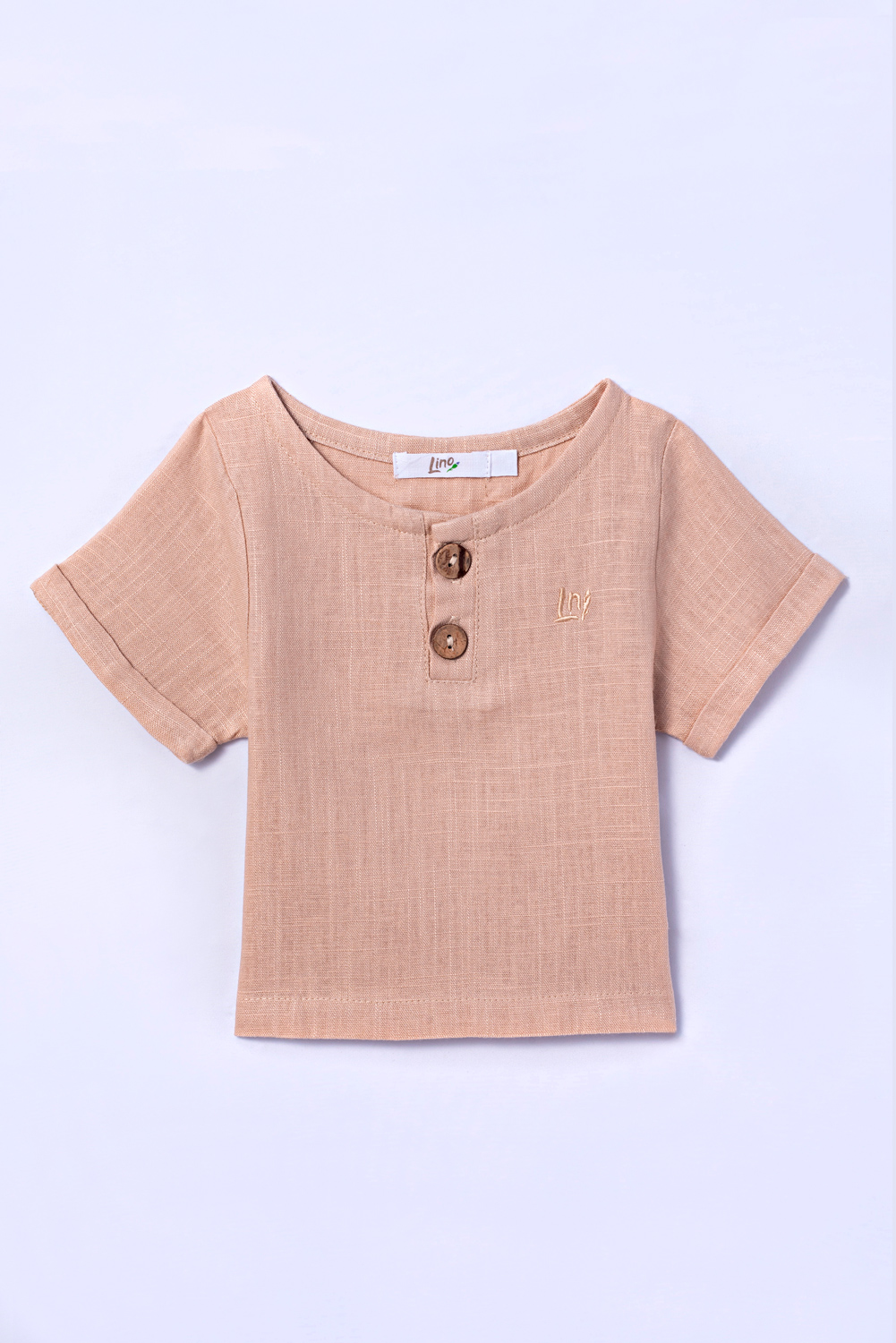 Camisa Infantil de Linho Manga Curta Com Botões e Bolso