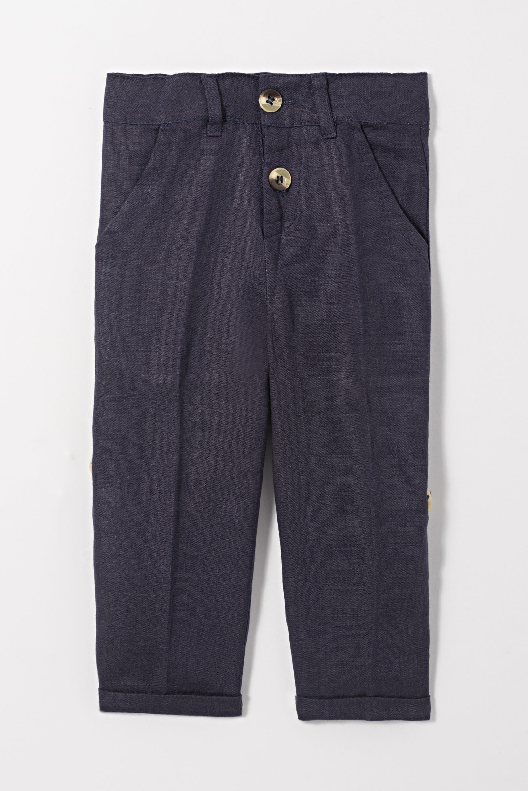 Calça Infantil de Linho Com Botões e Barra Italiana