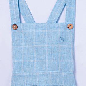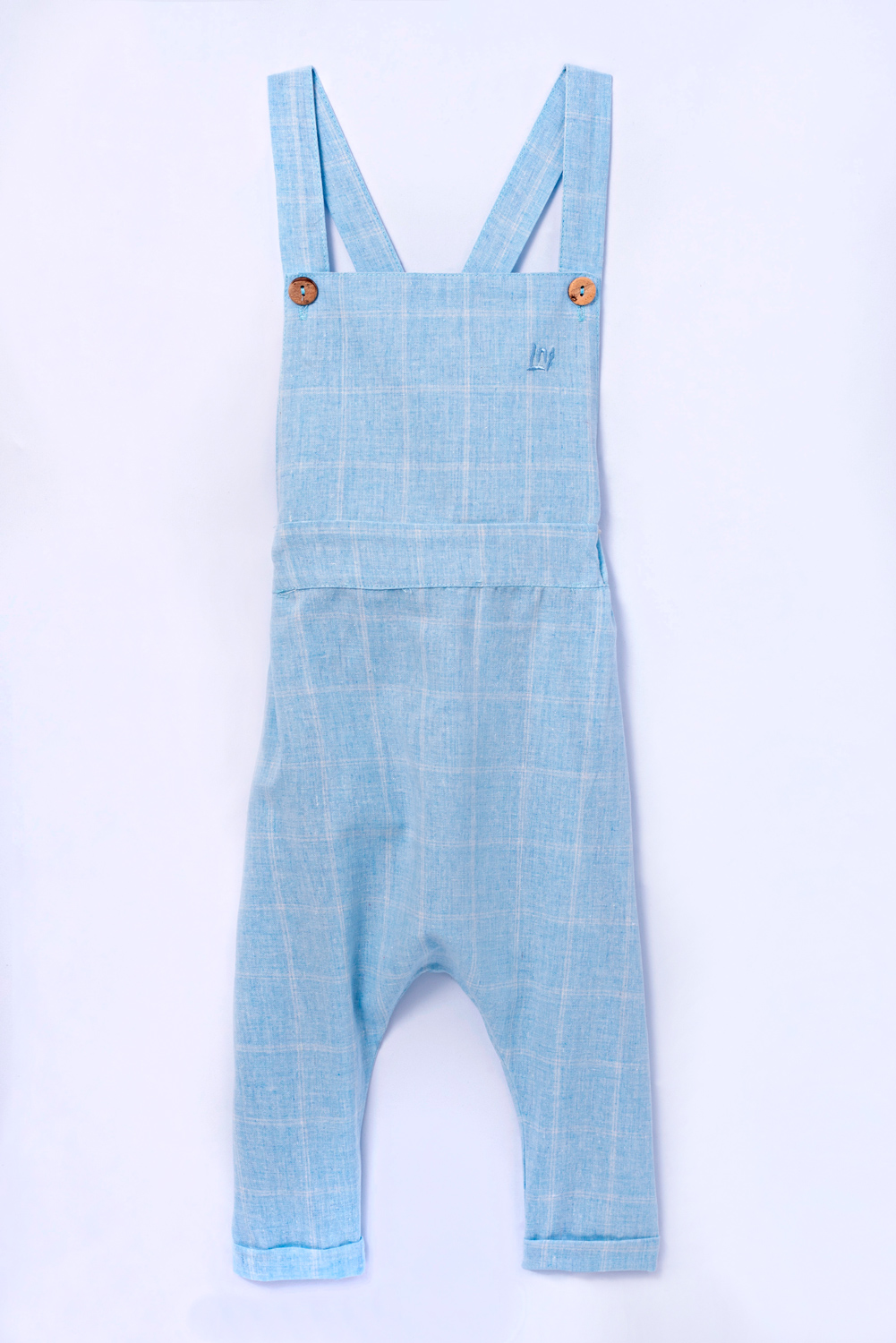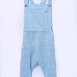 Jardineira Infantil de Linho Longa Xadrez Com Botões